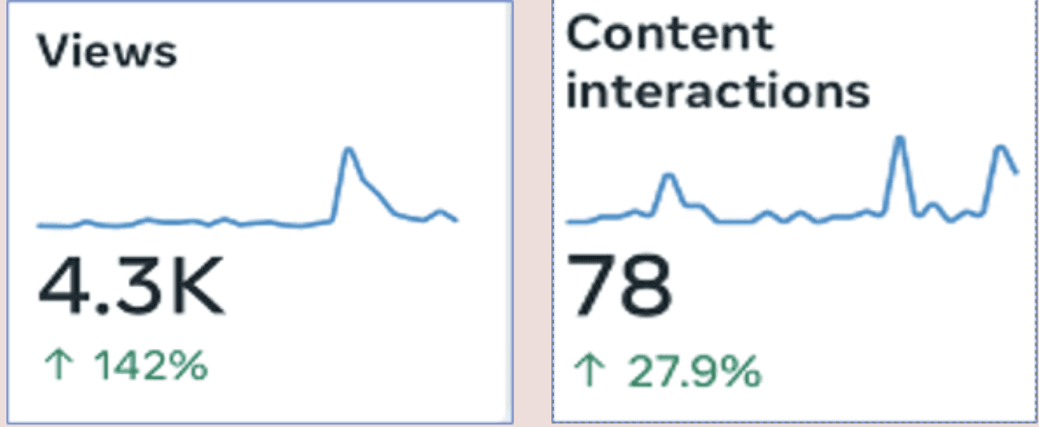4.3K views (142% increase) and 78 content interactions (27.9% increase)
