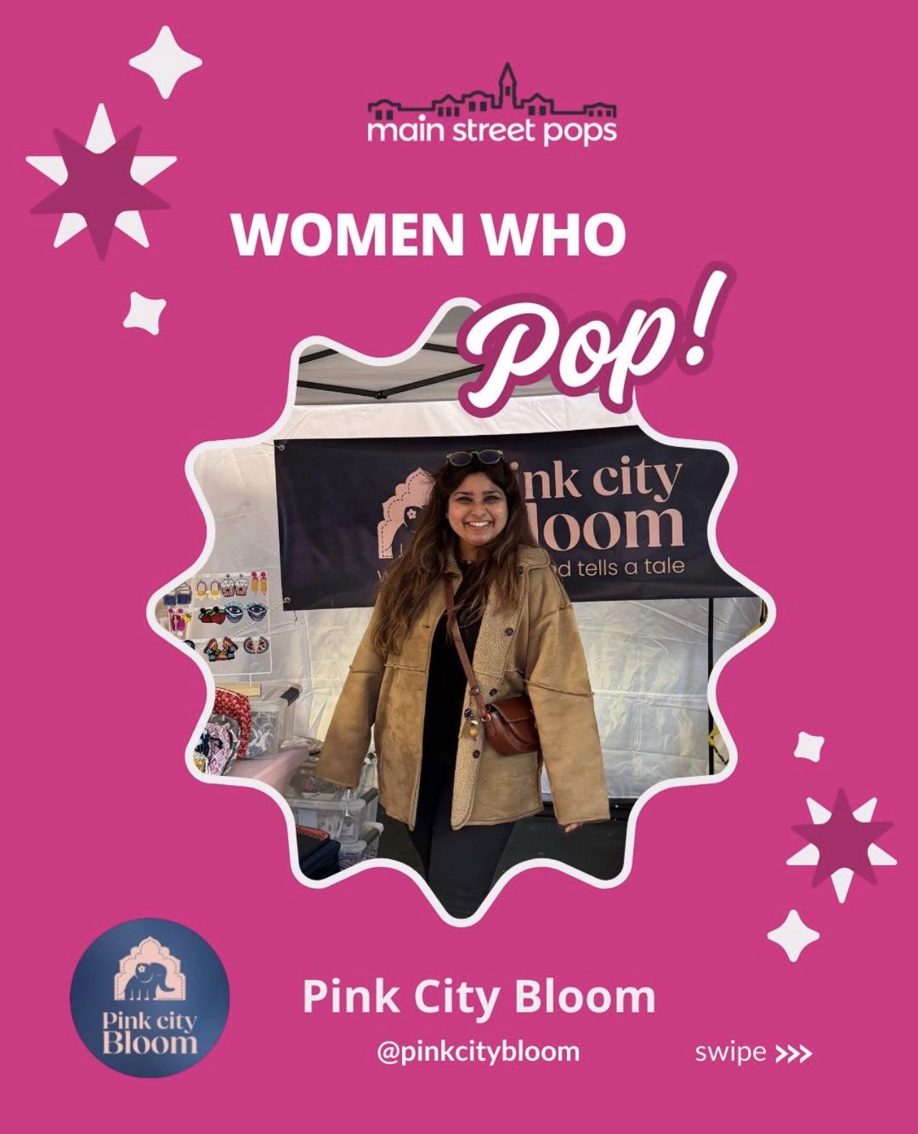Strategic vendor spotlight showcasing "Women Who Pop" series content for Pink City Bloom